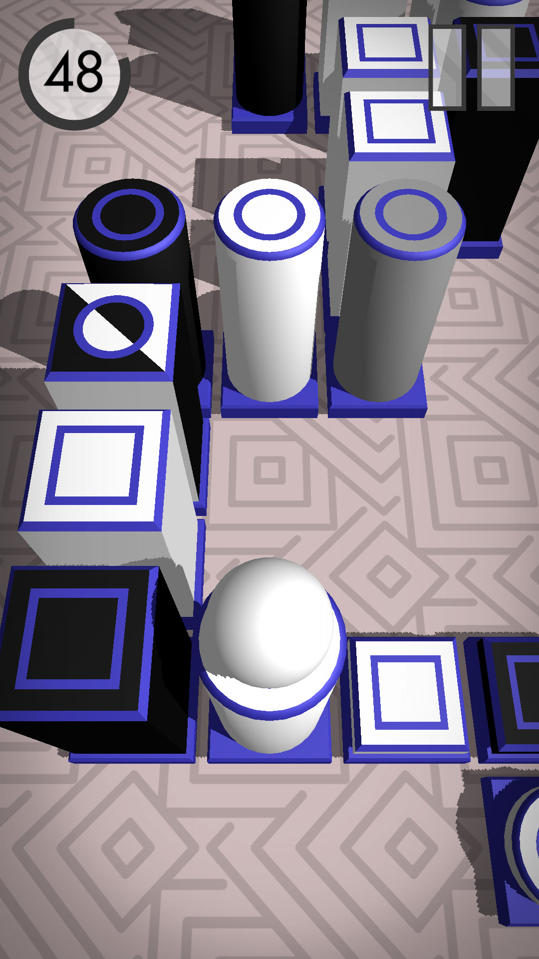 Next Shape is a casual game for smartphones that challenges your concentration. The goal is to navigate an object over platforms through various levels as quickly as possible. You can switch the object's shape from a cube to a sphere and back simply by touching the screen. The platforms too are either round or square and black or white. Your can only move on platforms that have the same shape and color as your object, or opposite both shape and color. The reduced art style gives this simple yet incredibly tricky platformer its finishing touch.